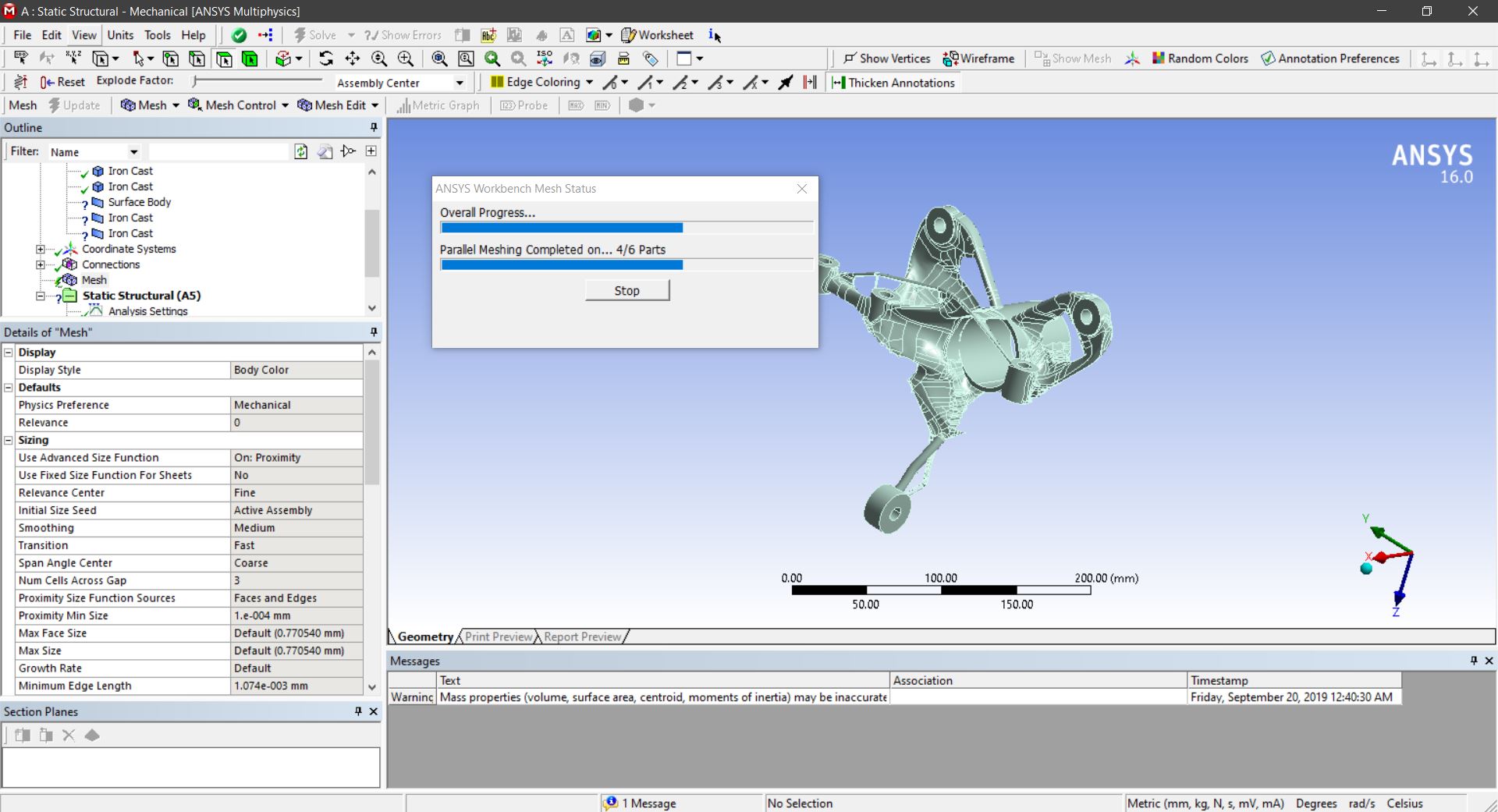 I am studying on static structral analysis on this file which is ? shared it below. But ? have some problems when ? am meshing it. There are a lot of faces and they are really complex. This is a generative designed model. ? know that there is some problem with model but ? am trying to keep going to analysis. do you think is it possible ? if it is possible what can ? do for that ?