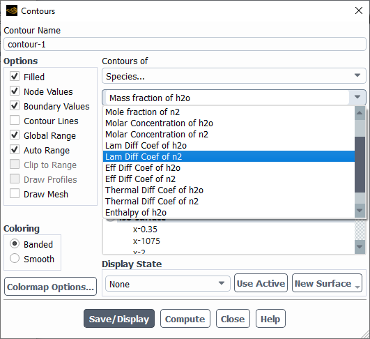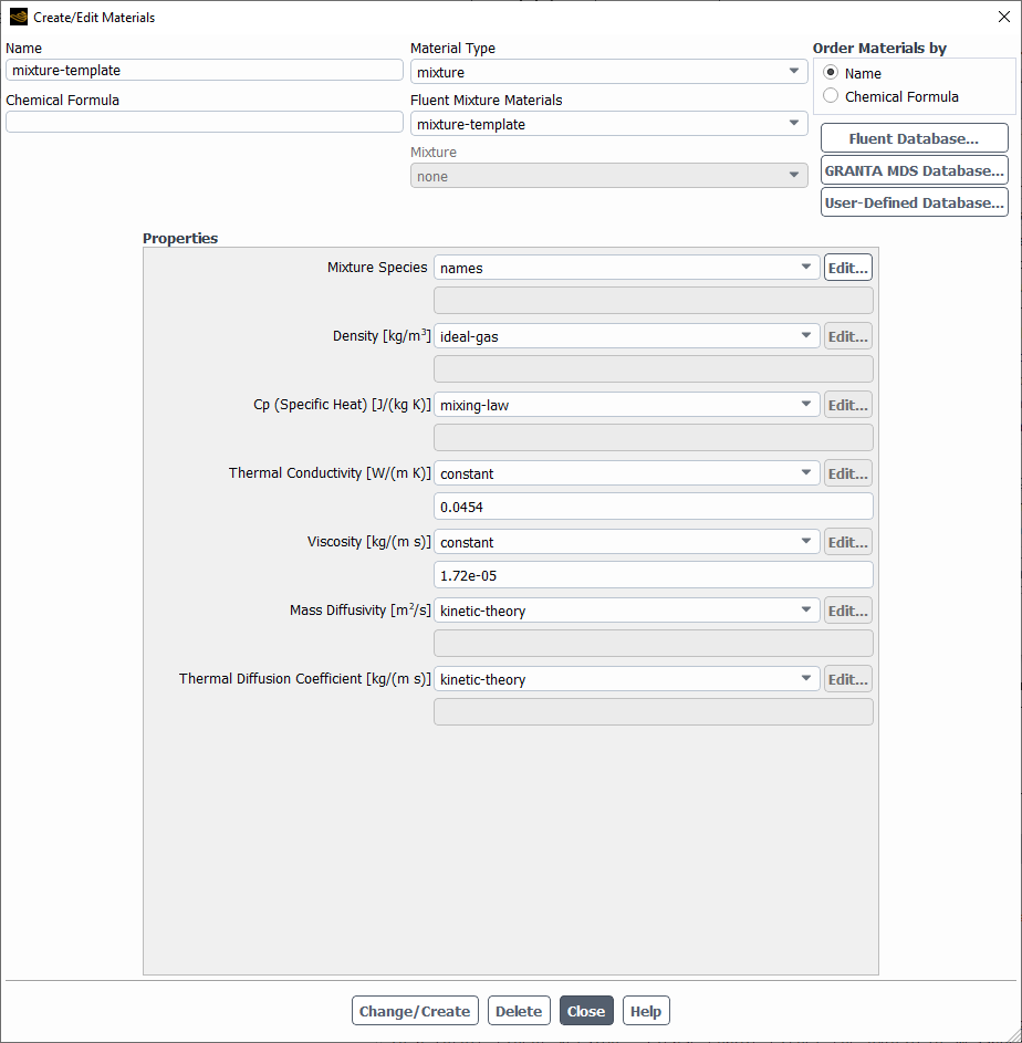 I am able to see two screenshots. One is for nitrogen material and second is mixture template, but I asked for the contours panel, because when we choose kinetic theory in mixture template for mass and thermal diffusion coefficient it sets automatically and I would like to plot the binary diffusion coefficient for those values which has been set up by fluent automatically. Please see the attached screenshot.