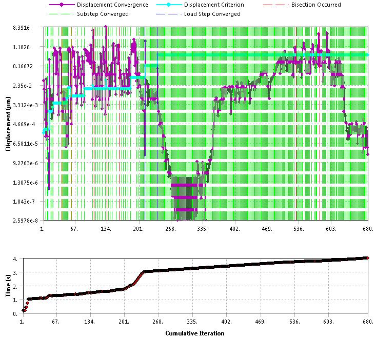 SubscriberThe unmodified model with 2 elements wouldn't start converging on step 1. The only change I made was to make it 4 elements then it did start converging through step 1. That modified model did not make it all the way. It failed to converge here: