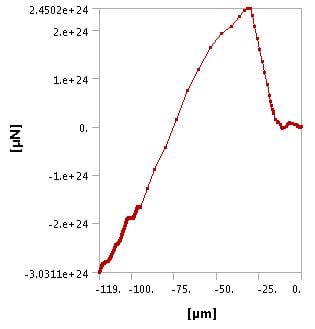 Here is the Force vs. Displacement chart for the 1/4 model, start to finish is right to left on this chart. This chart has to be multiplied by 4 for the full model.Â