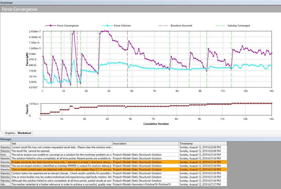 But the workbench still shows the error message like this: The solver was unable to converge on a solution for the nonlinear problems.