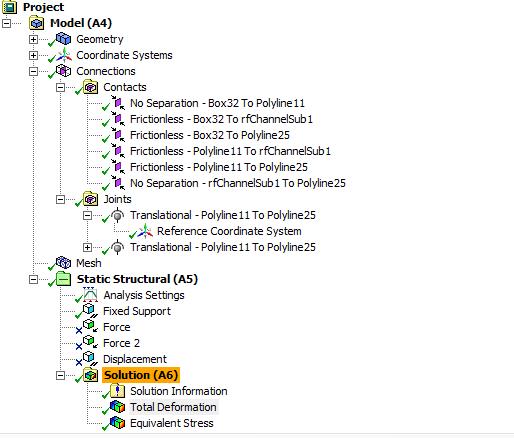 1. If you want the insertion force data, add a Probe for Joint Load Reaction Force.