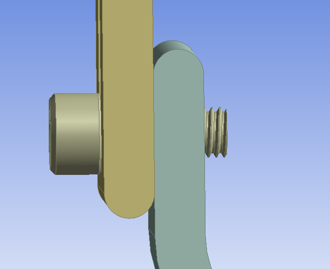 SubscriberIf you are simulating the lower part only, simply apply a fixed support to the threaded hole. I would suggest you open the lower part in CAD (or SpaceClaim) and delete the threaded hole geometry and replace it with a simple hole. That will result in a much better mesh. While you are in CAD, you could also imprint on the face that contacts the other part the line where the other part ends at the radiused edge. This is a line that the lower part is bending around. Then you can add a Compression Only support to that face which will be a more accurate simulation of the lower part than simply having a Fixed Support on the threaded hole. This "reduced" model is appropriate for stresses that are not close to the threaded hole. To get accurate stresses around the threaded hole, you need to include the bolt and the other part.