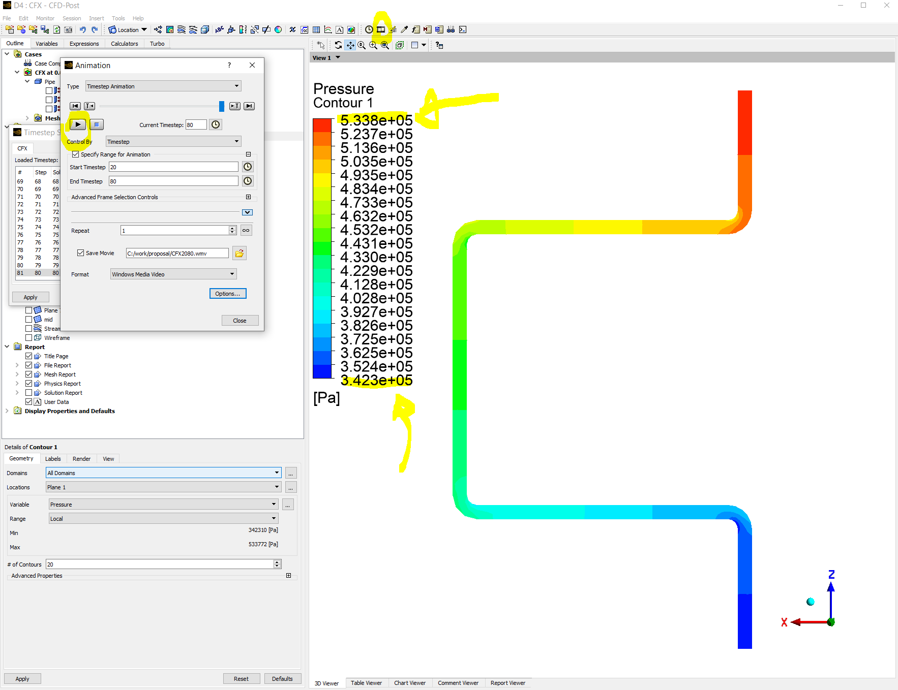 The legend (color bar) numbers keep changing when I animate the pressure contour. See image below.