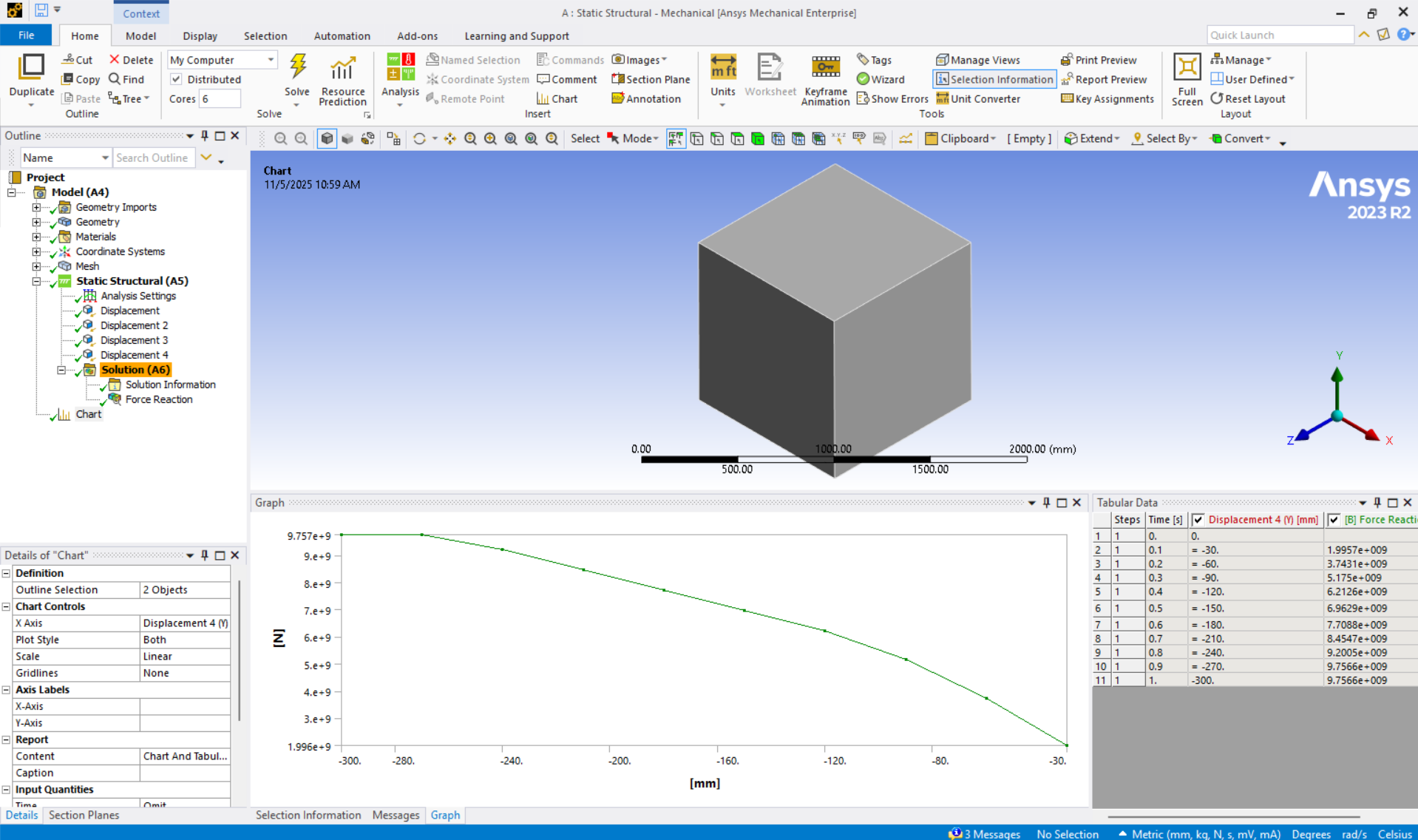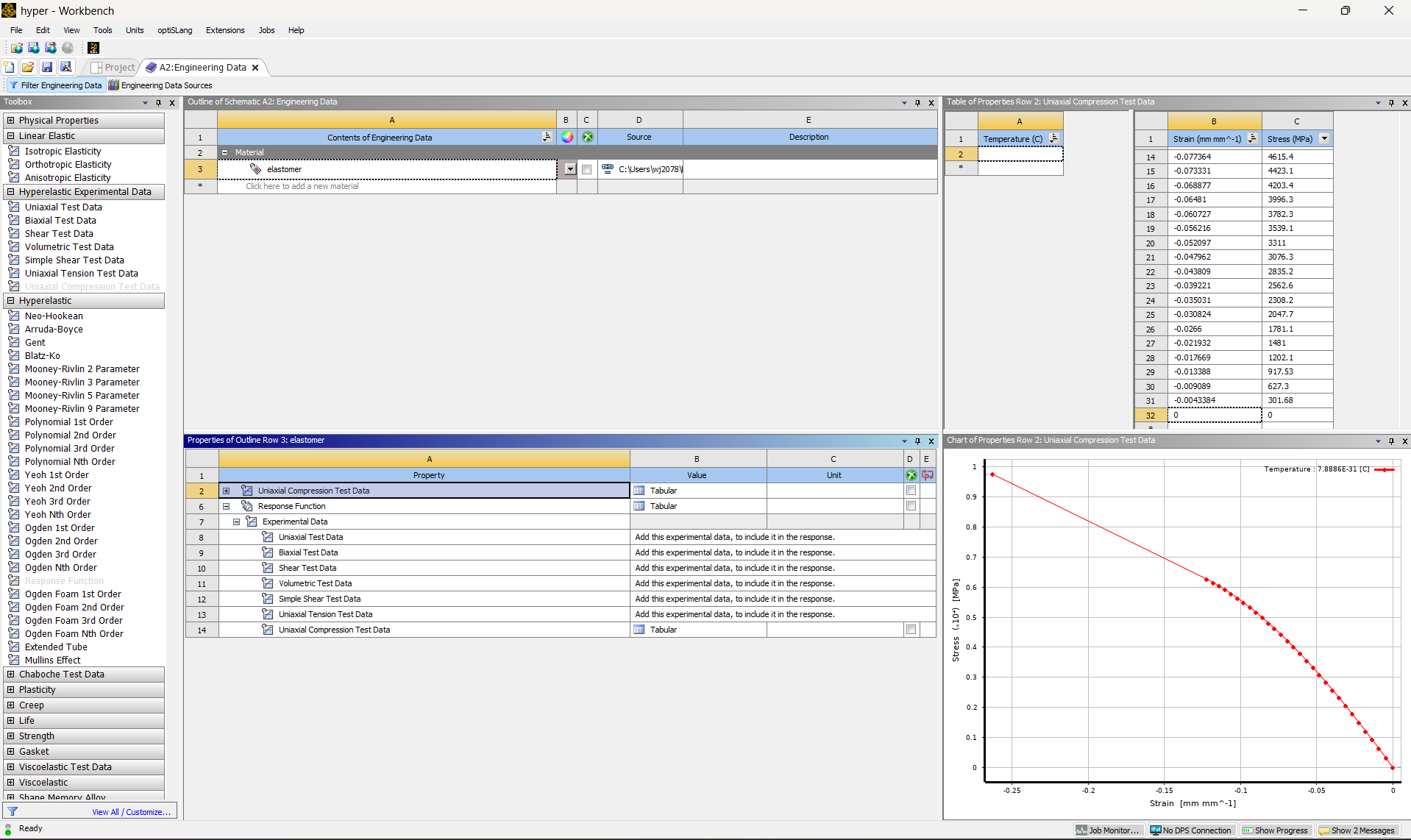 I have already imported my uniaxial compression data and used the Response Function option to define the material. I tested the model using a single-element simulation, and the results under compression looked reasonable.