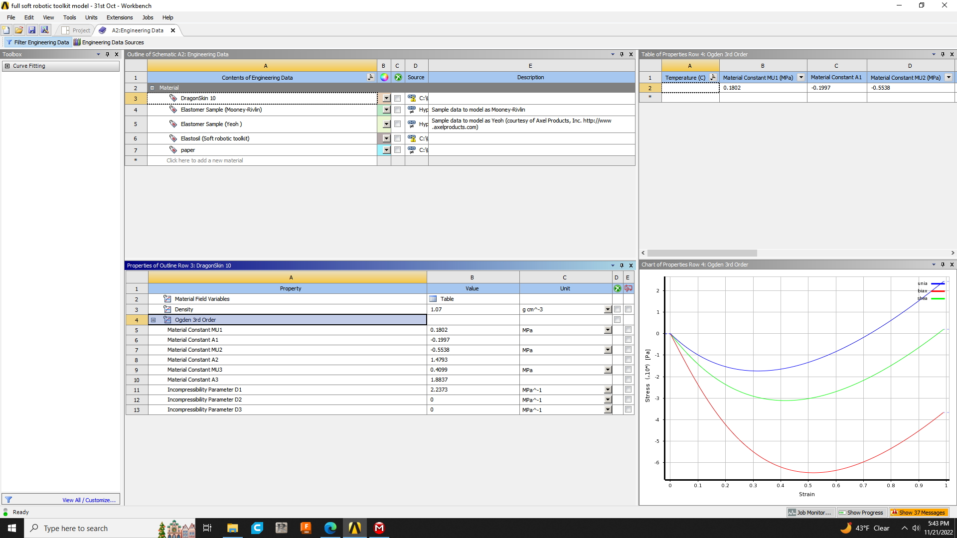 Alternatively, you can input the material data provided from the charts, being very careful to convert to engineering stress and strain, not true stress and stretch. Then you would curve fit using the curve fit tools in engineering data. My colleague already provided lessons on how to do that.