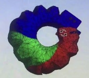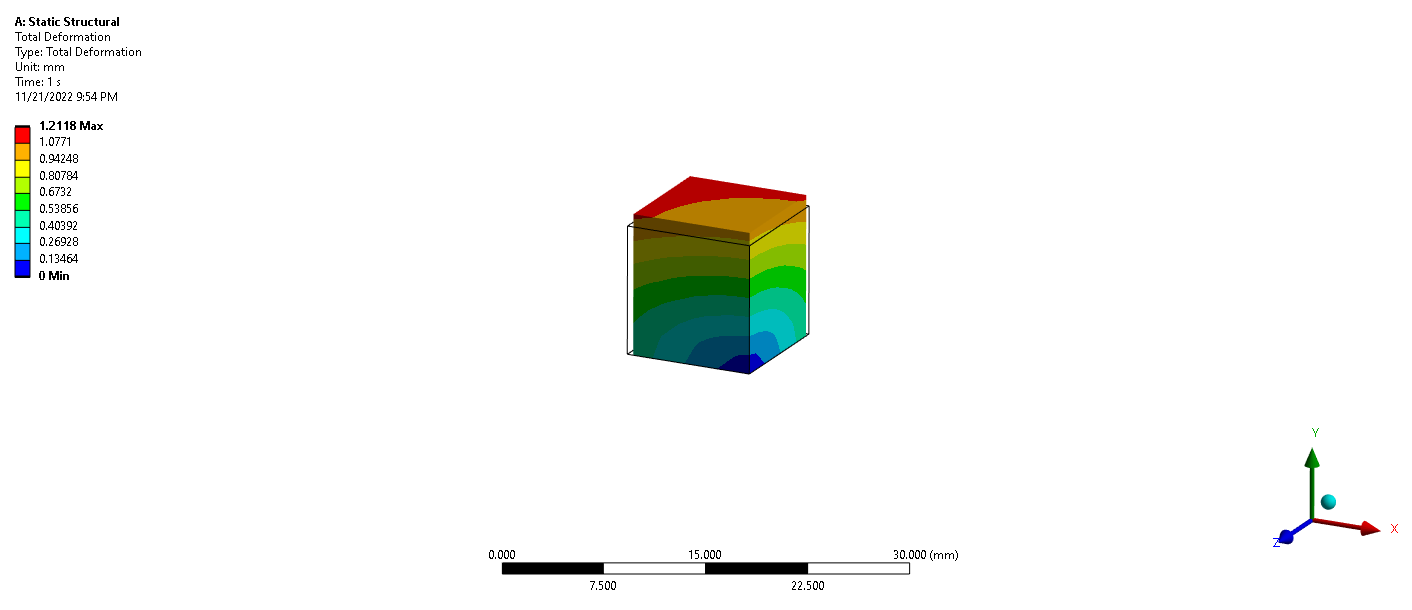 I push into the cube, so what should we see in the simulation? You expect it would squish down right? But look what it does. The cube stretched. This is non-physical for the silicone material. Â