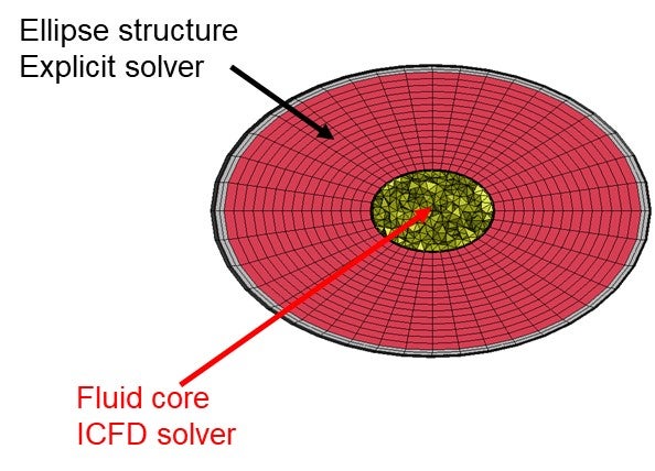 I am simulating an ellipse (structure) with a fluid core in LS-DYNA. I used ICFD to model fluid core with *ICFD_BOUNDARY_NONSLIP. The structure was solved using explicit solver while the fluid was solved using implict solver. They were coupled using *ICFD_CONTROL_FSI with two-way coupling (i.e., OWC = 0)