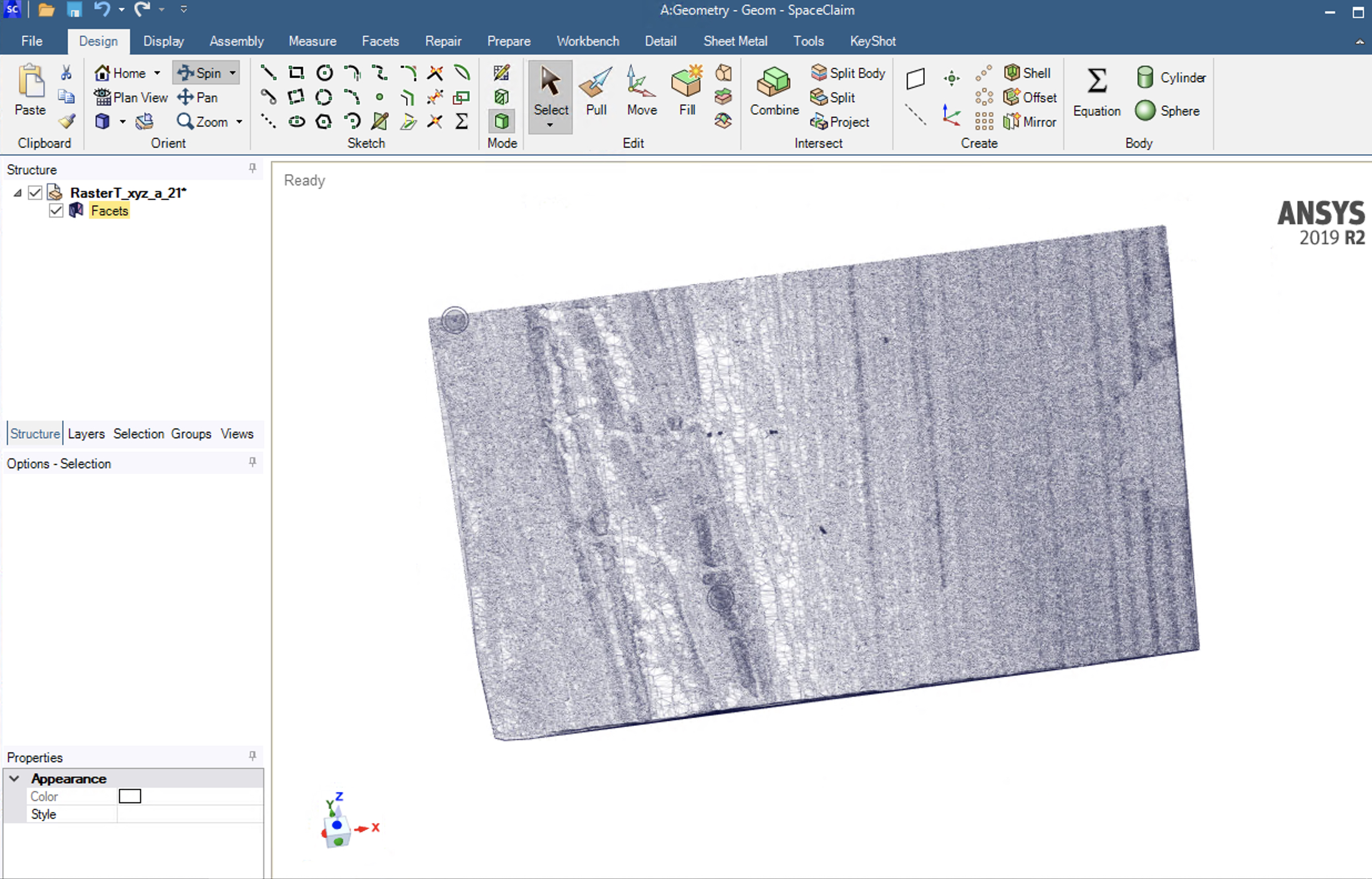 I have imported a STL that appears to have some sort of mesh to it (see image) but it Is still flat in the vertical direction. Is there a way to change this once in SpaceClaim or does this have to do with the import itself being corrupted?