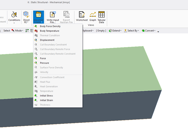 However, there is not more available options in the Imported loads option in Static structural.