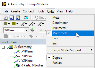 does DesignModeler has same feature? cuz my model quite small (~0.15 um & 15um)