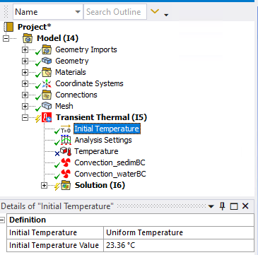 Ansys EmployeeYou can add a commands object under Transient Thermal. In the details you will see 'arg1' , 'arg2' etc that can be parameterized (below picture). You can give the value for 'arg1' in the details. Then in the commands you can use "IC,ALL,TEMP,ARG1" to specify the initial temperature. In the project view under 'parameter set' you should see this argument available.