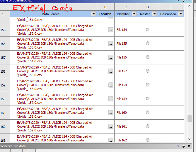 Forum ModeratorExternal data can be used to map temperatures on nodes, so along with the temperatures, you should have node locations on which these temperatures are applied as well. Looking at the third image, that does not seem to be the case. What you can do is create a separate text file for each time step, which will contain all the nodes for all boundary conditions and then scope the files to each time step using data view.