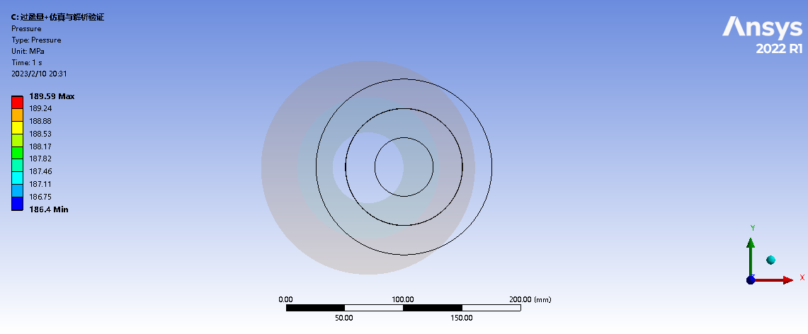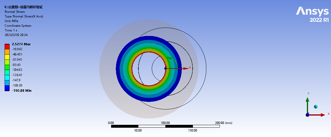 If any Support is not set, the Interface Pressure and Stress are well matched with analytical results, please see Fig.1, Fig,2 and Fig.3.