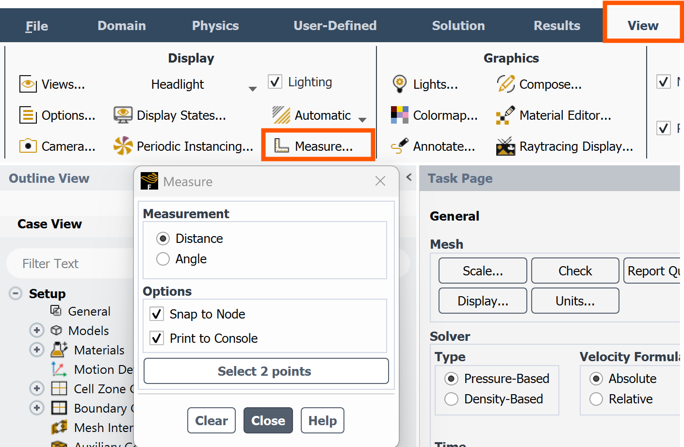Is there a distance measurement tool in Fluent? How does one measure the distance between two points, a line, or two surfaces?