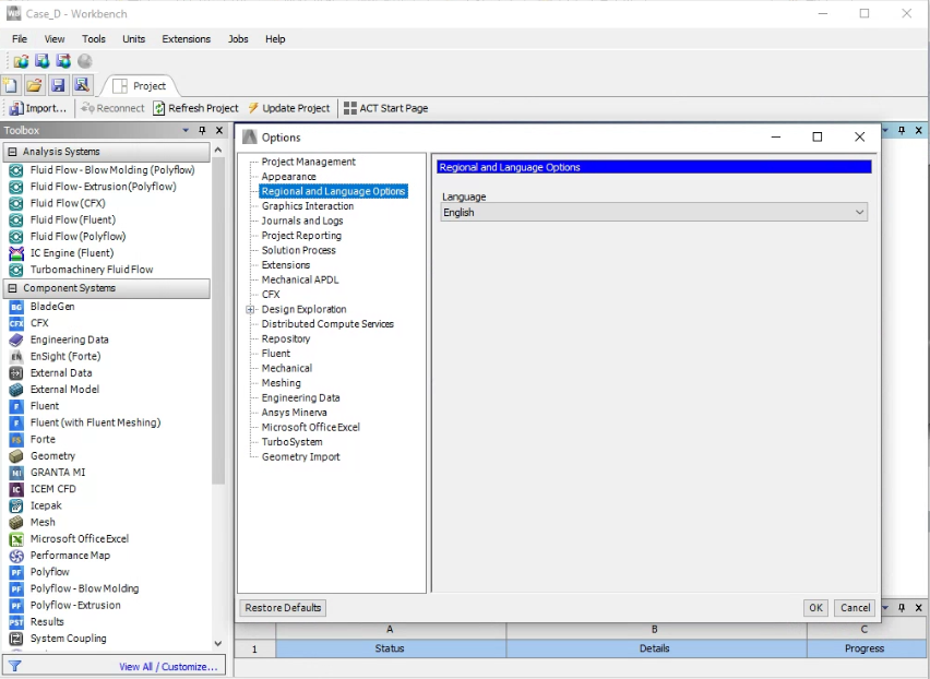SubscriberHello everyone. I have an issue regarding the language settings in ANSYS. I am using ANSYS Workbench for Fluent simulation (Academic Research license). I already set the language into ‘English’ just like snapshot below.