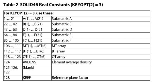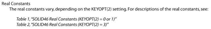 It would be a great help if you could post the link for SOLID46 real constants. I have tried searching a lot but couldn't find any source. -