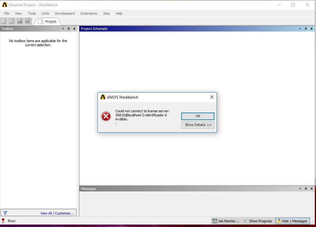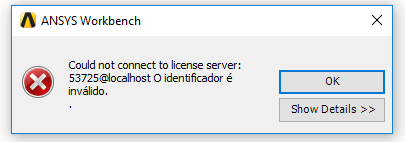 Could not connect to license server: 54476@localhost O identificador é inválido.