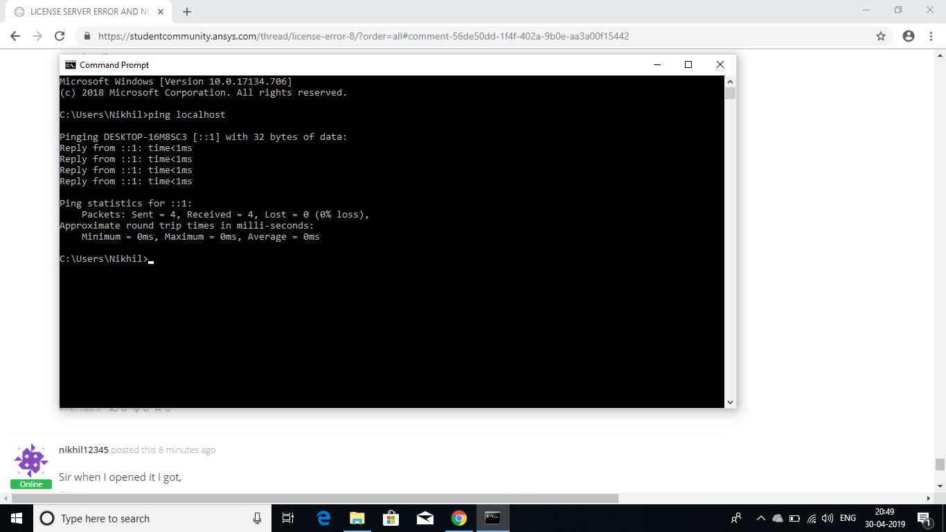 C:UsersgoniveraAppDataLocalTemp.ansys>ping localhost