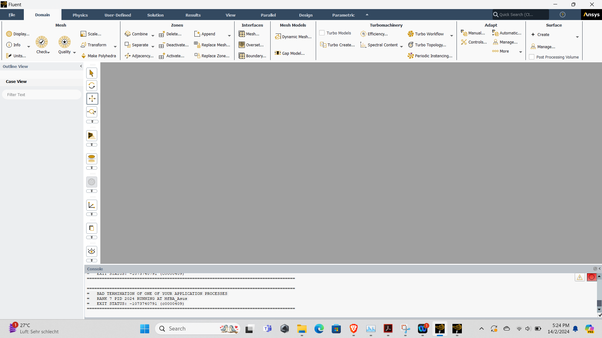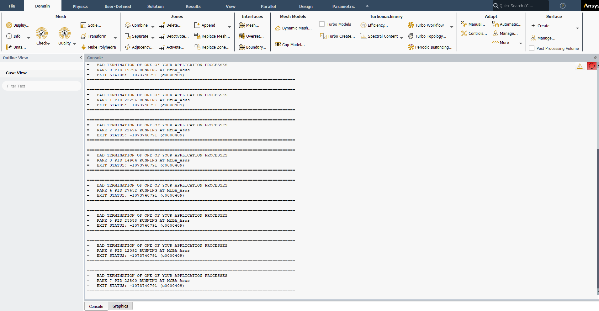 I've encounted an error that says "Cannot switch mode due to license unavailability or licensing error" when I'm trying to go to "Switch to Solution" after i've completed the mesh.