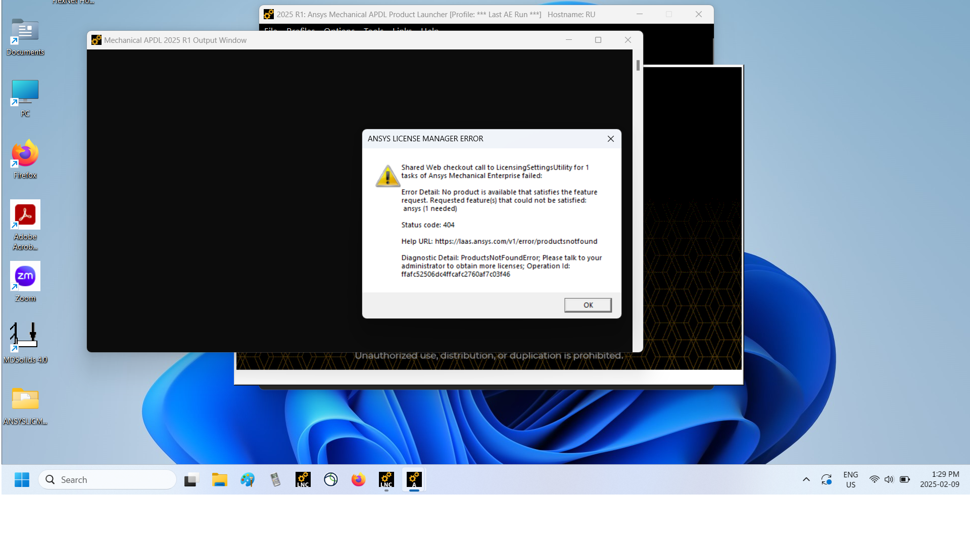 If there is an issue with the Ansys license manager, send screenshot of the error message from the Ansys license management center.  Thank you.