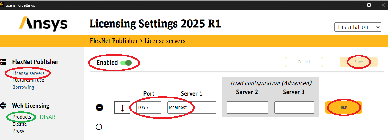 Open/Run the Ansys Licensing Settings to check Step 1 & 2 from my previous post: