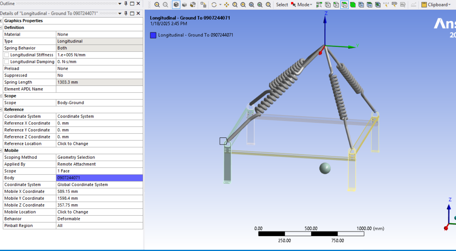 SubscriberThanks for your detailed explanation. Actually when simulating with spring my scope was body-body which creating false result now I have change my scoping method to body-ground, this time I did'nt add the preload instead gave higher stiffness. Now is it replicating the real scenario? are stresses and deformations fine and realistic?Â
