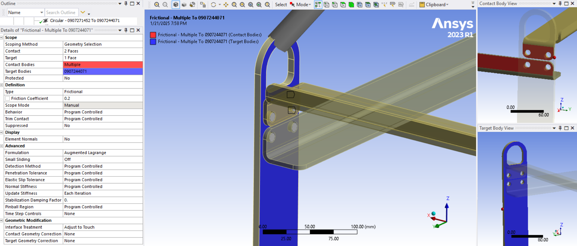 When I set the beam connection to deformable in detail window in both (reference and mobile ), the stress distribution is quite similar near bolt hole unlike when set to rigid.Â