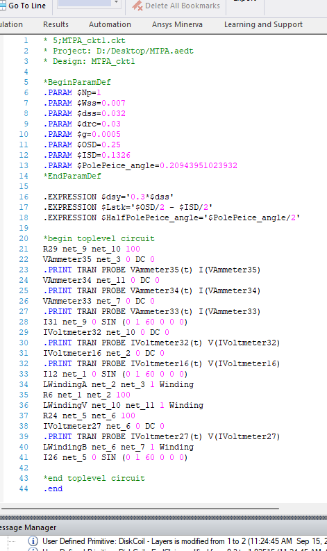 Ansys EmployeeSorry for late reply. After finishing the MaxCircuit, in project manager, you can right click the MaxCircuit design>>export to save it .sph file. Then, you can right click excitation>>External circui>>Edit external circuit>>Import netlist.