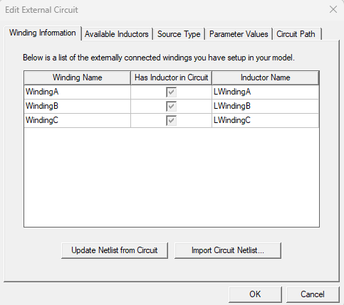 Yes thats why we choose External for the Winding type and linke the circuit to the model. Otherwise how should I use the external valuse and simulate the model !?