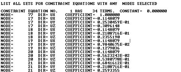 SubscriberI manually created CE in APDL to list down CE equation as I could not get it in Workbench although I know CE is generated in Point Mass/ Rigid Body.