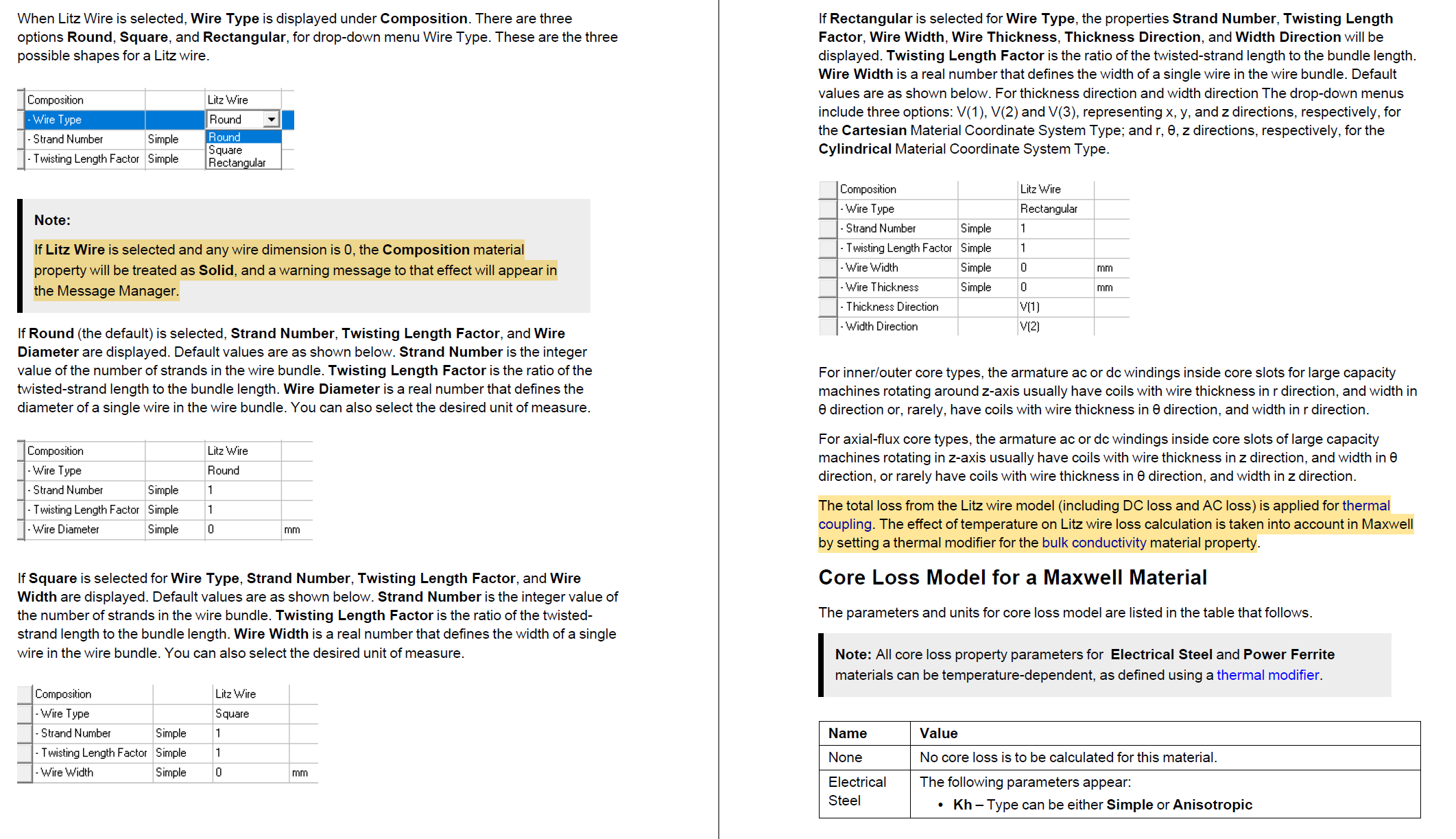 Ansys EmployeePlease refer "Litz Wire Modeling" in Maxwell help for more details.