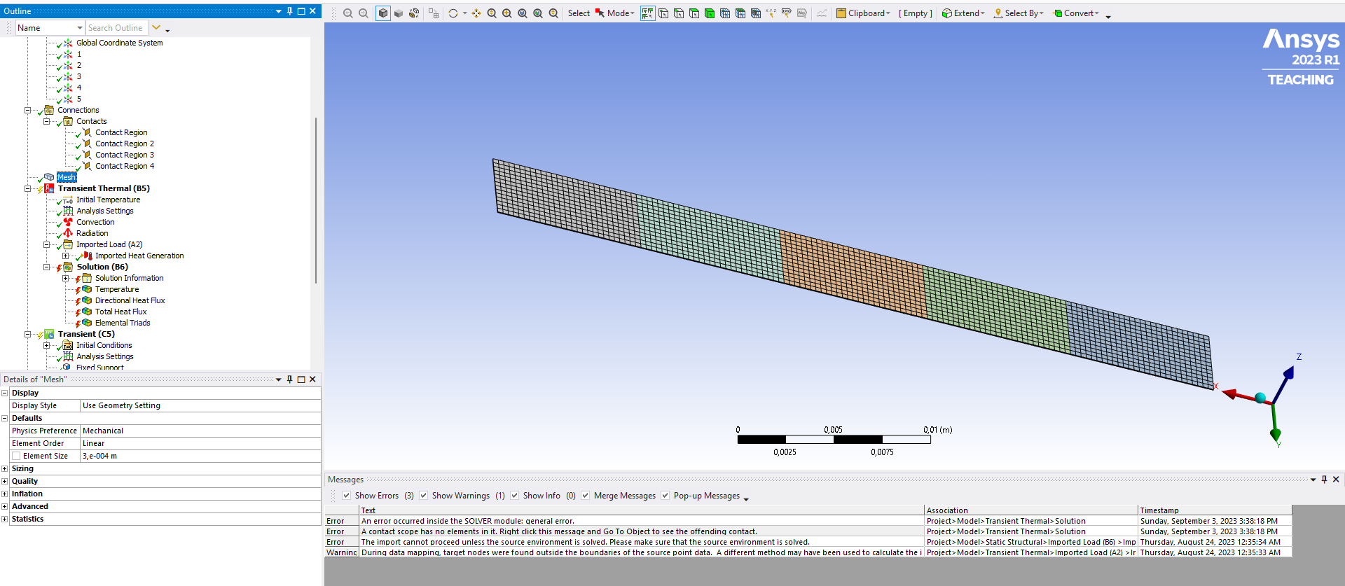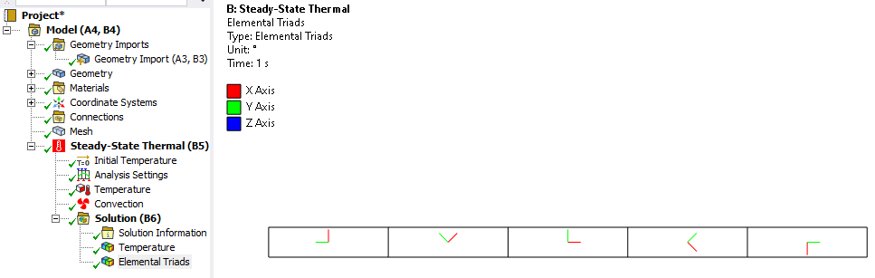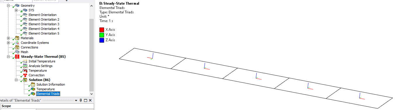 Insert an Element Triad into the Solution to see that the coordinate system was used. I meshed this with 1 element per body, but you can have more elements in each body if you want.