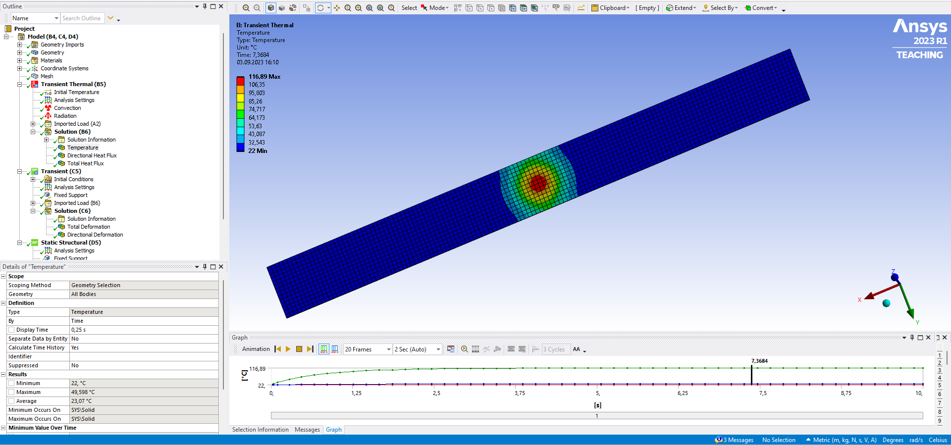 Another change you could make is to use a Coupled Analysis, so that the structural and thermal solutions are solved simultaneously in the one Transient analysis.