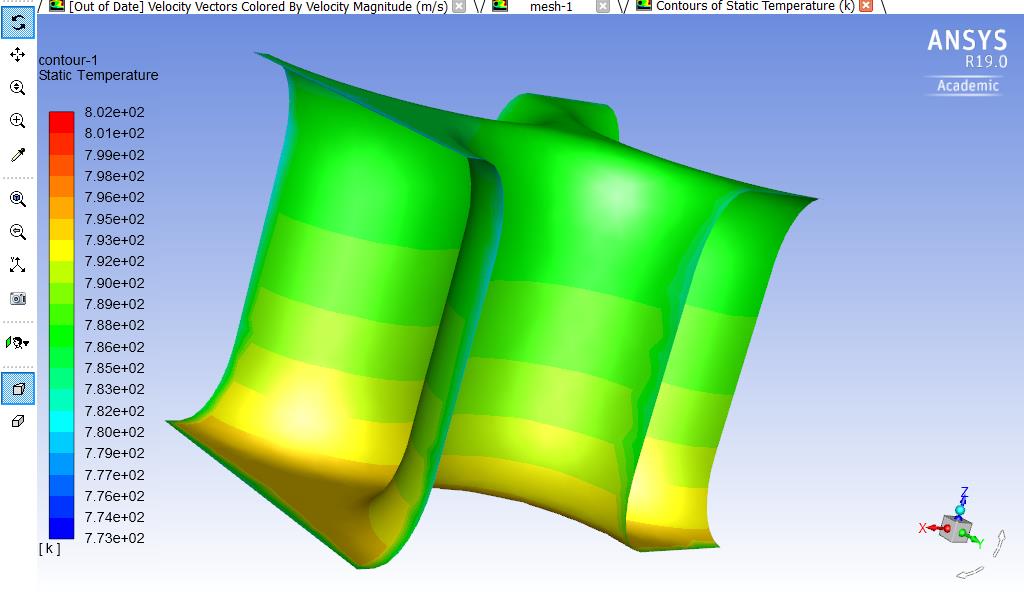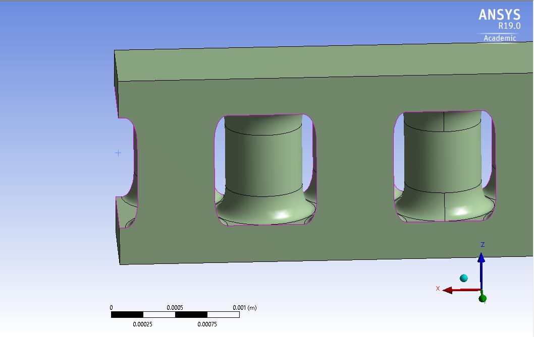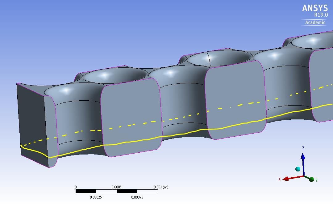 SubscriberHello, I'm working on the design of a pin fin array and my ultimate goal is to calculate local heat transfer coefficients and heat fluxes. I did a conjugate analysis where I combined solid (picture 1) and fluid (picture 2) domains, inputted the properties for each and obtained a temperature distribution.