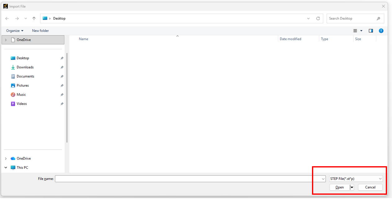 A window appeared showing the file extension, which was in STEP format (*.st*p).