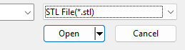 4, When I choose STL Flie, the file import menu appears, but the file format is STEP.