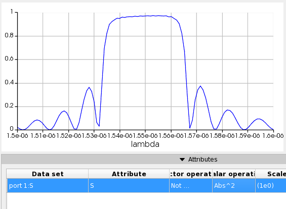 After running the simulation, I have opened the S parameter from port 1 (the one used to excite). To my understanding, this should represent the reflection of the structure. I have also checked the T parameter in the same port. Since this represent the light transmitted through this port and this is also the exication port, my understanding is that this value represents the reflection of the structure as well.Â