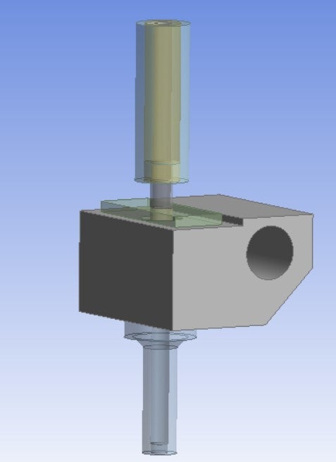 I wanted to investigate a FDM extrusion system. The model I created with DesignModeler, it consists of 9 bodies, 8 solids and 1 fluid streaming/moving through the system.