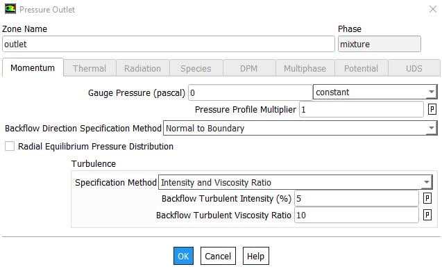 Ansys Employeealso please share screen shots of outlet boundary conditions, models used, other set up etc.Â
