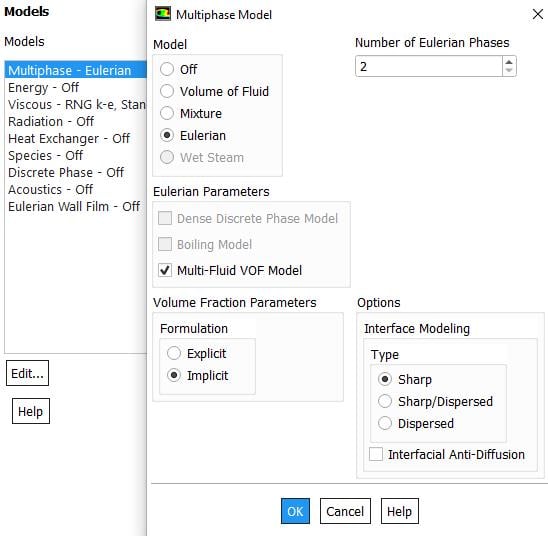 Ansys EmployeePlease use VOF model with implicit volume fraction and give thai density as operating density. Eulerian model for this case is too complicatedÂ