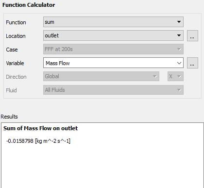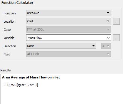 The flow rates seem to be correct (I've chosen different time steps now). But the CFD Post is still showing the same for the flux. Is there any possibility to check the surface area in fluent? If I check it in DM it says 0.088 m2. And if I divide 12.5 kg/s by 0.088 m2, it should be 142 kg/s/m2, right?Â