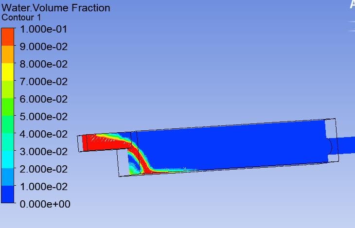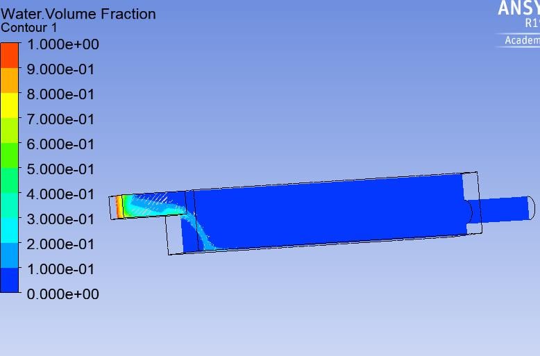 I have already decreased the maximum of the volume fraction contour, but it still doesnt reach the end of the container or the pipe.