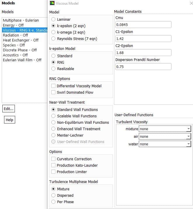 Multiphase k-epsilon Models    Mixture k-epsilon        Â