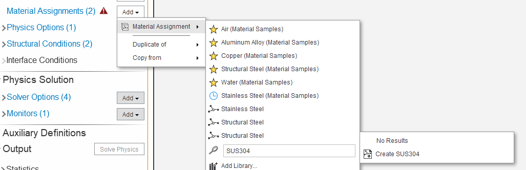 I am using ANSYS Discovery AIM 2019 R3 for structural analysis of a model made of stainless steel, in reality defined as SUS304 in Japanese Industrial Standard. However, I cannot select stainless steel as the material in the analysis option instead of structural steel. Stainless steel has different Young's modulus, so its deformation must be different.