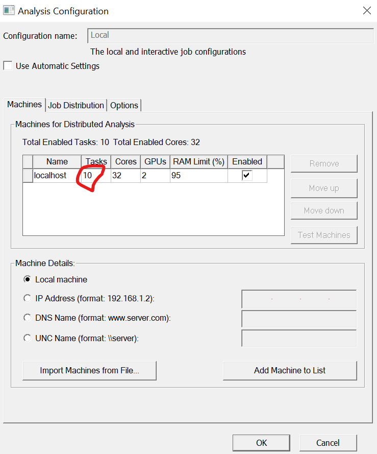 Forum ModeratorThis may vary by project as it will determine how the job is split to run, for the total # of parallel tasks. You will likely be best served to use the "Use Automatic Settings" option and allow the product to determine how best to split the job amongst the total # cores.
