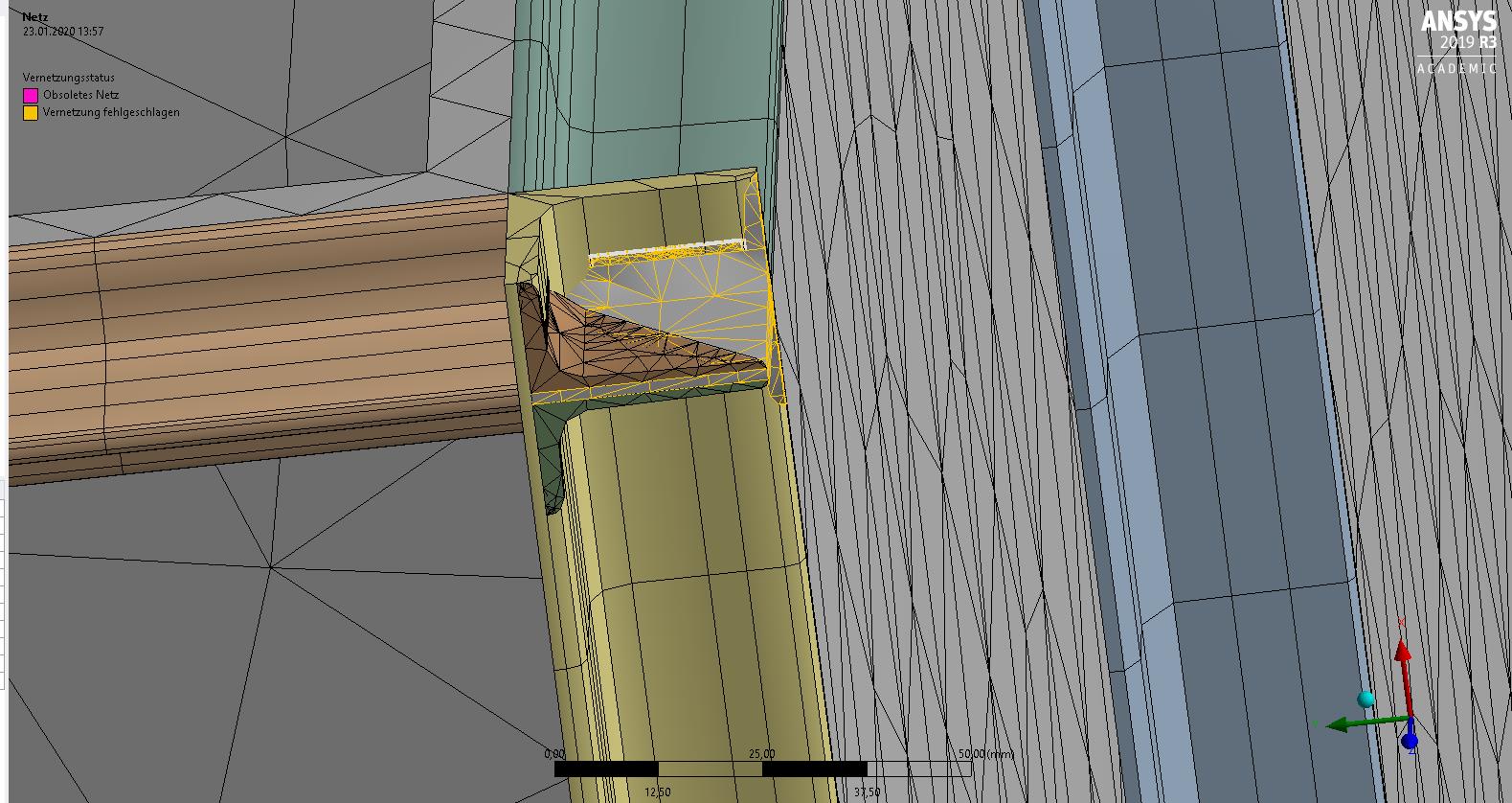 in the pictures there are only small meshing errors on the edges of the container(marked with orange Colour). I don't know what the problem is and i have tried to reduce the size of meshing but it still happens again.