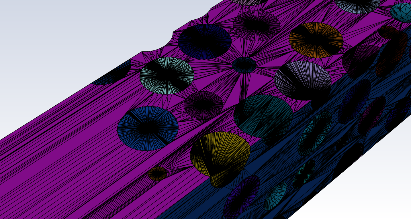 I want to mesh both solid and fluid regions of a packed bed of particle. When I do surface mesh, I get the weird surface mesh shown in the image. Has anyone faced this problem before.