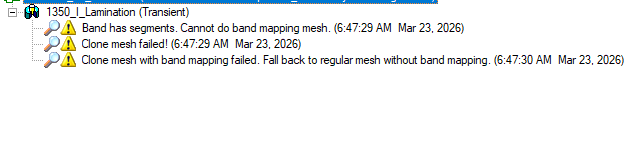 SubscriberI used a faceted cylindrical band at 2–3° per facet and also a regular polyheron as a band, but Clone Mesh fails with “Band has segments. Cannot do band mapping mesh.” Since the help also says Band Mapping Angle supports cases where the band of motion is a true surface, please confirm which band geometry is required for Clone Mesh/Band Mapping in this model and Maxwell version 2022 R2