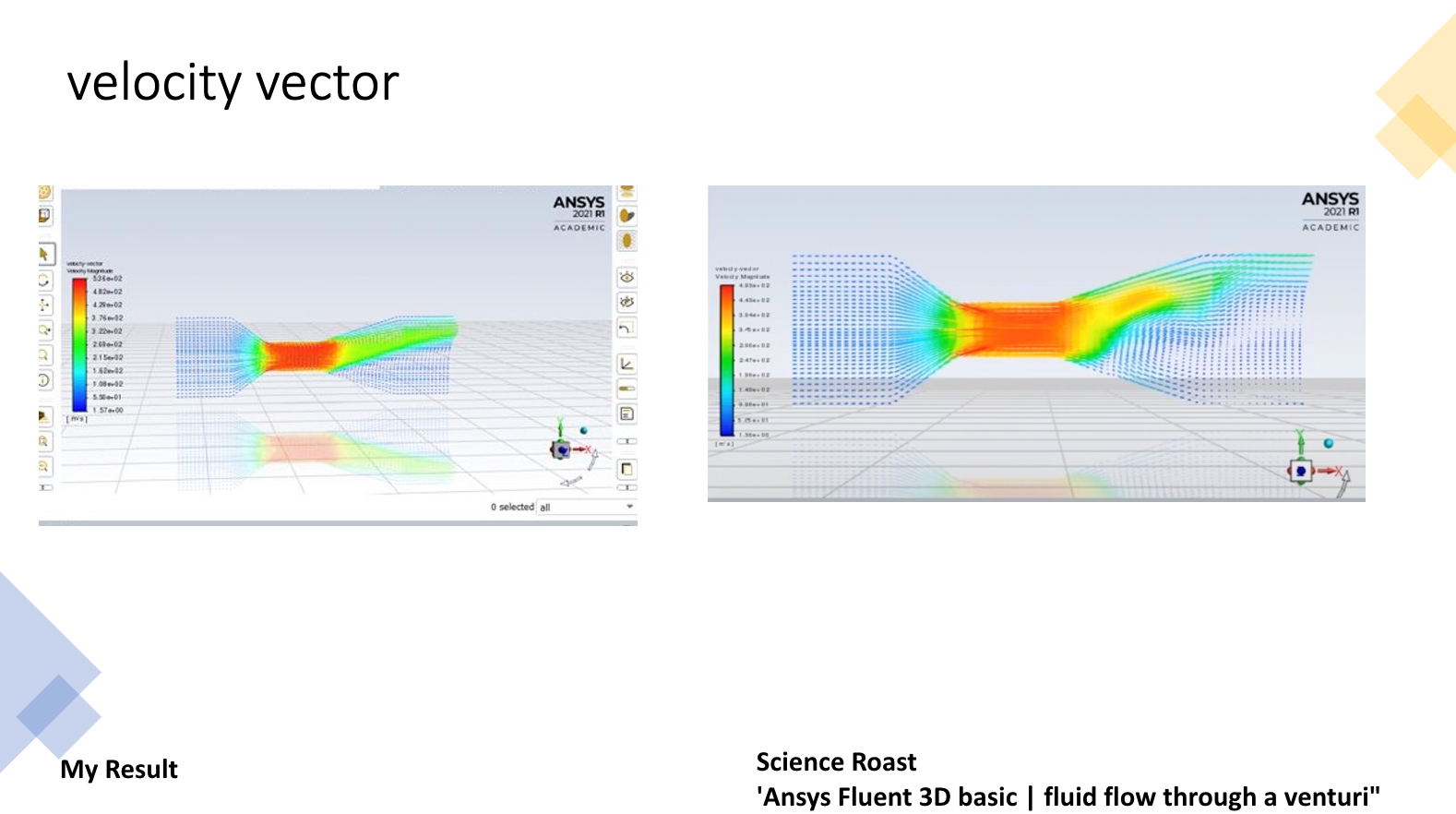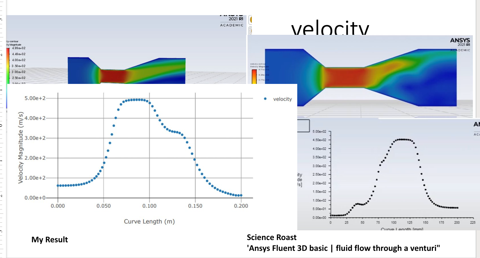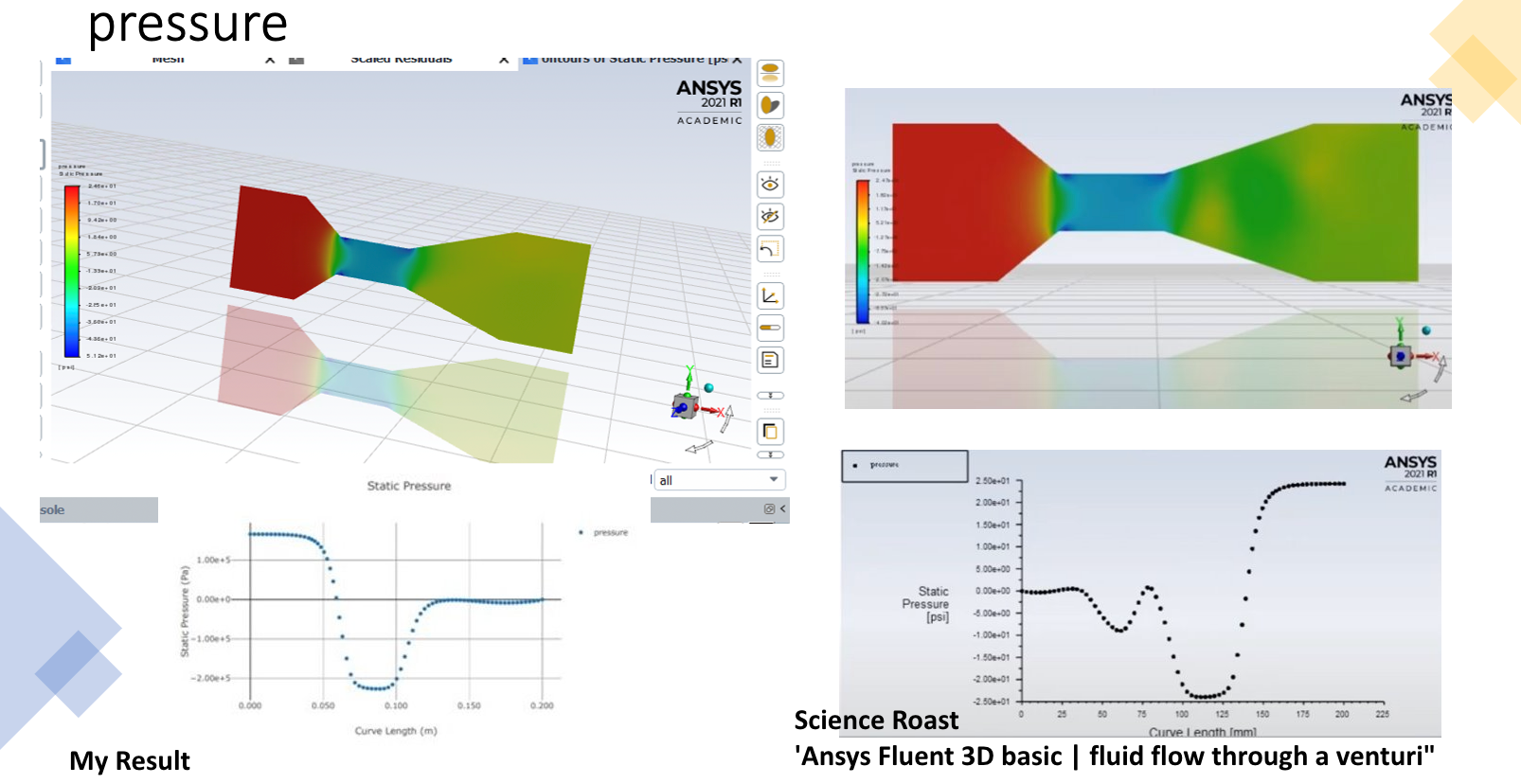 SubscriberHello, I was trying to create a fluid simulation for a venturi based on The Venutri YouTube tutroial  to achieve the velocity & pressure graphs. However, seems like there's a big difference in the results in terms of the velocity , pressure, pressure vectors etc.